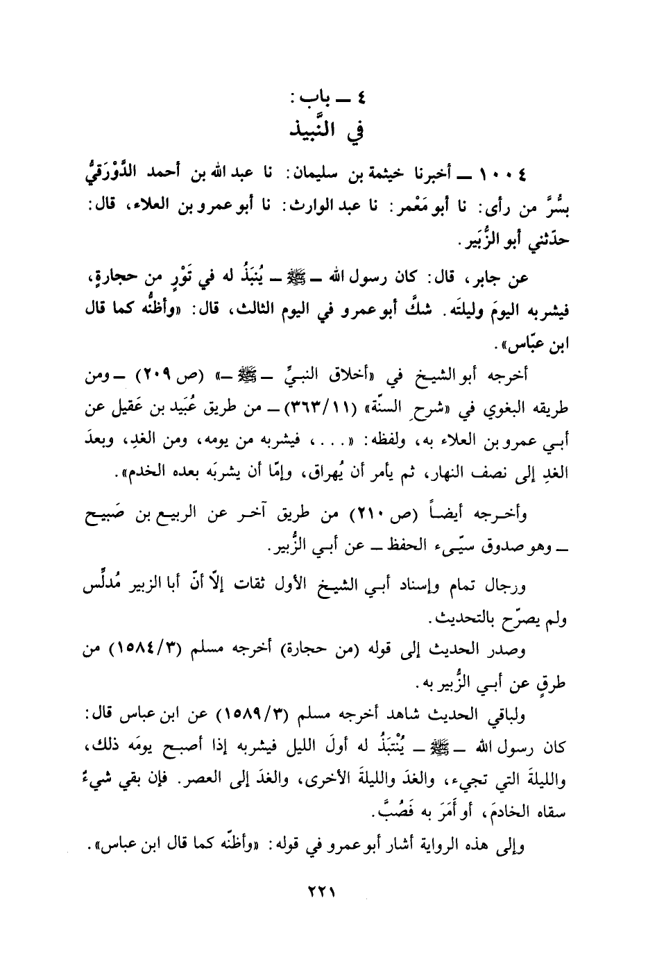 1004 - أخبرنا خيثمة بن سليمان: نا عبد الله بن أحمد الدَّوْرَقيُّ بسُّرَّ من رأى: نا أبو مَعْمر: نا عبد الوارث: نا أبو عمرو بن العلاء، قال: حدّثني أبو الزُّبَير.