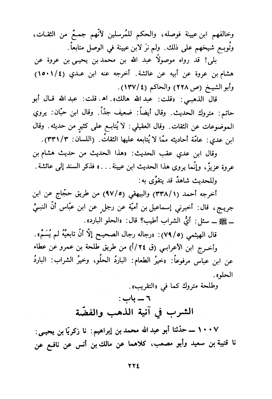 وقال ابن عدي عقب الحديث: "هذا الحديث من حديث هشام بن عروة عزيزٌ، وإنّما يروى هذا الحديث ابن عيينة ... " فذكر السند إلى عائشة.