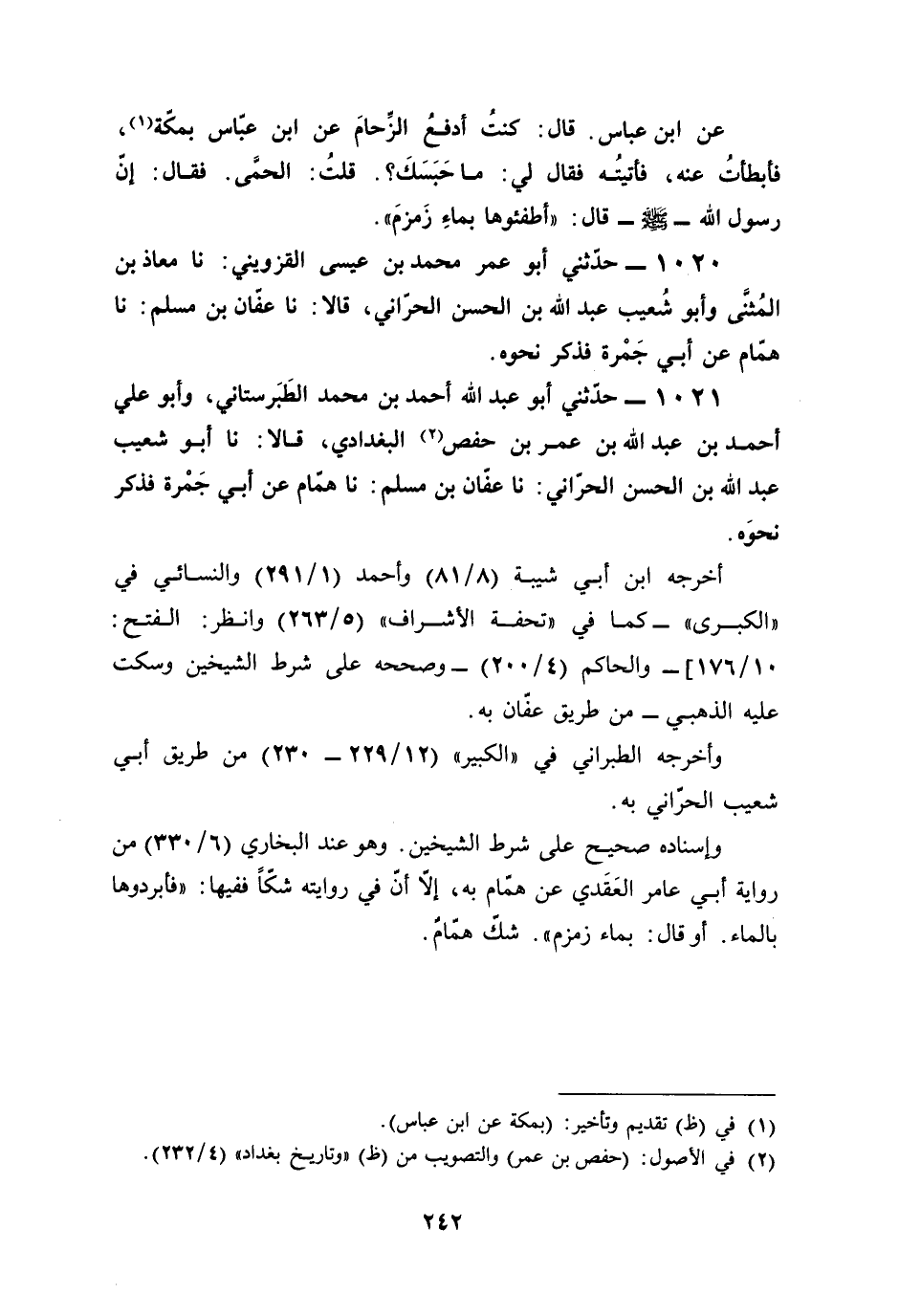 1020 - حدّثني أبو عمر محمد بن عيسى القزويني: نا معاذ بن المُثنَّى وأبو شُعيب عبد الله بن الحسن الحرّاني، قالا: نا عفّان بن مسلم: نا همّام عن أبي جَمْرة فذكر نحوه.