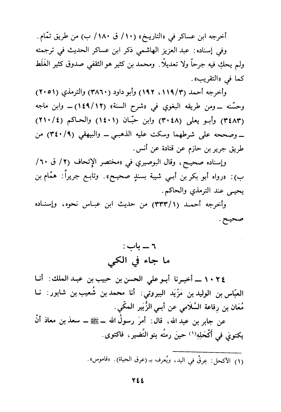 1024 - أخبرنا أبو علي الحسن بن حبيب بن عبد الملك: أنا العبّاس بن الوليد بن مَزْيَد البيروتي: أنا محمد بن شُعيب بن شابور: نا مُعَان بن رِفاعة السَّلاَمي عن أبي الزُّبَير المكّي.