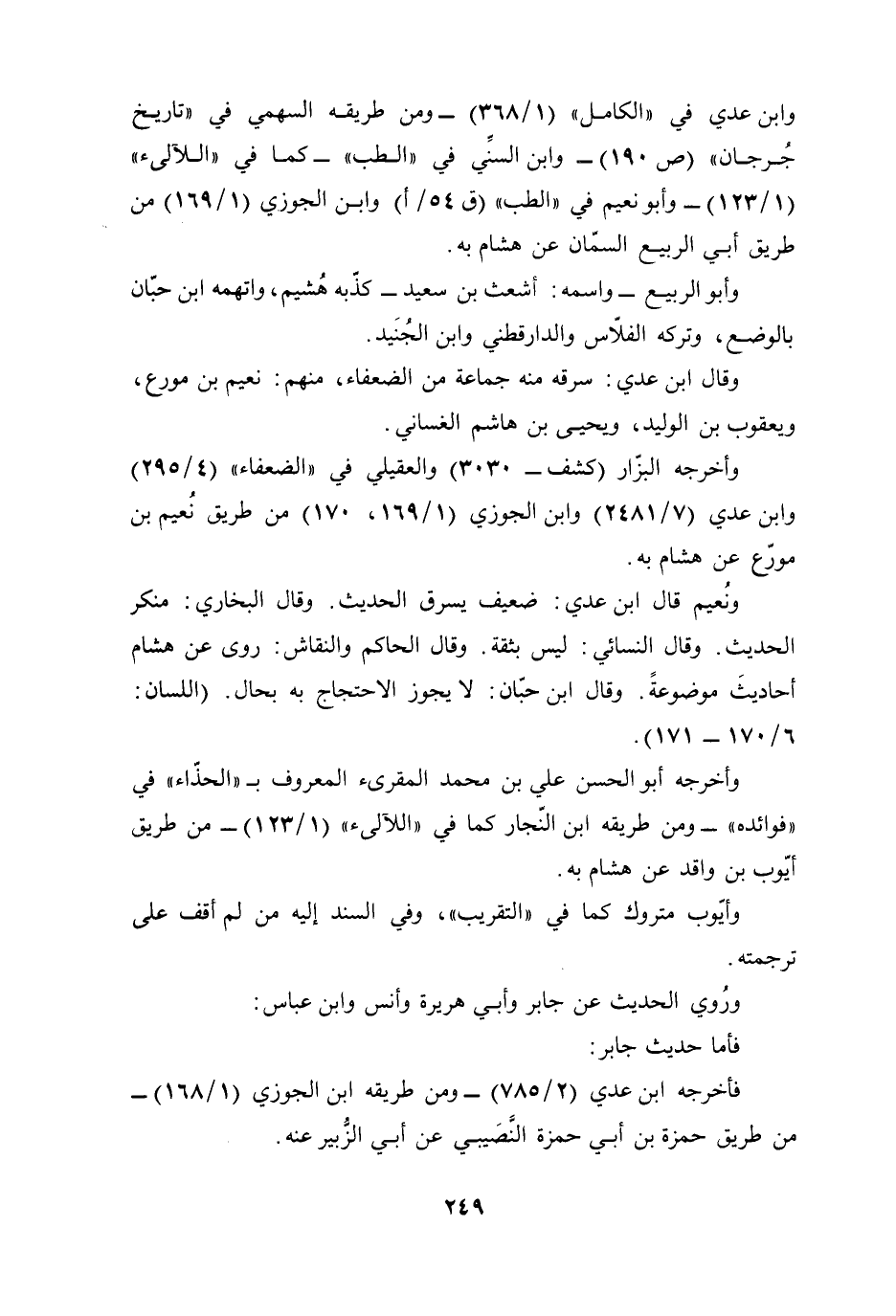 ونُعيم قال ابن عدي: ضعيف يسرق الحديث. وقال البخاري: منكر الحديث. وقال النسائي: ليس بثقة. وقال الحاكم والنقاش: روى عن هشام أحاديثَ موضوعةً. وقال ابن حبّان: لا يجوز الاحتجاج به بحال. (اللسان: 6/ 170 - 171).