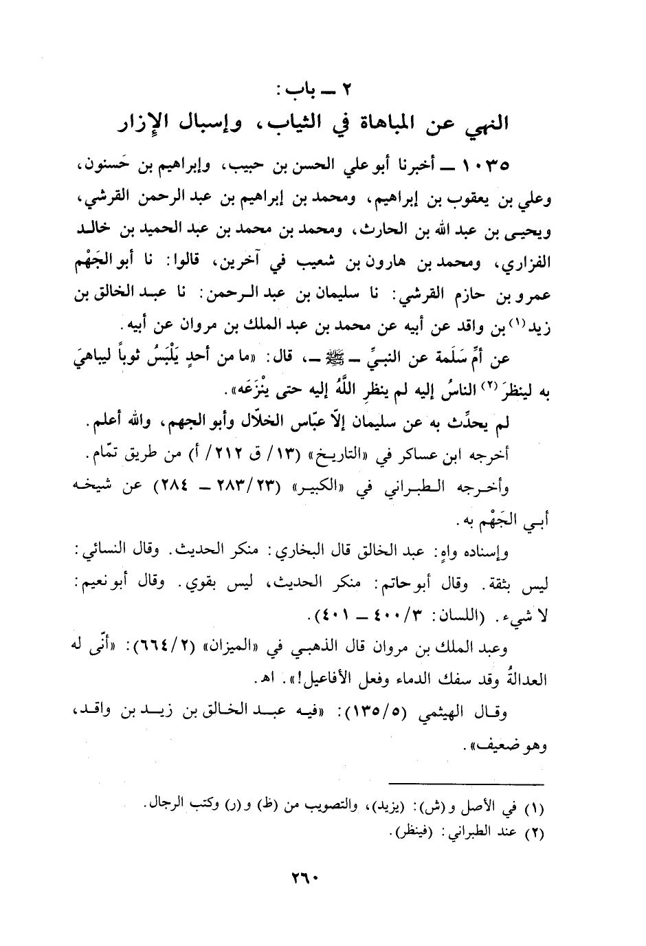 2 - باب: النهي عن المباهاة في الثياب، وإسبال الإِزار