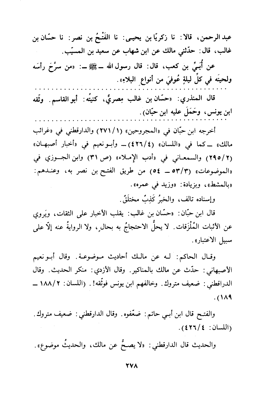عبد الرحمن، قالا: نا زكريّا بن يحيى: نا الفَتْحُ بن نصر: نا حسّان بن غالب، قال: حدّثني مالك عن ابن شهاب عن سعيد بن المسيّب.