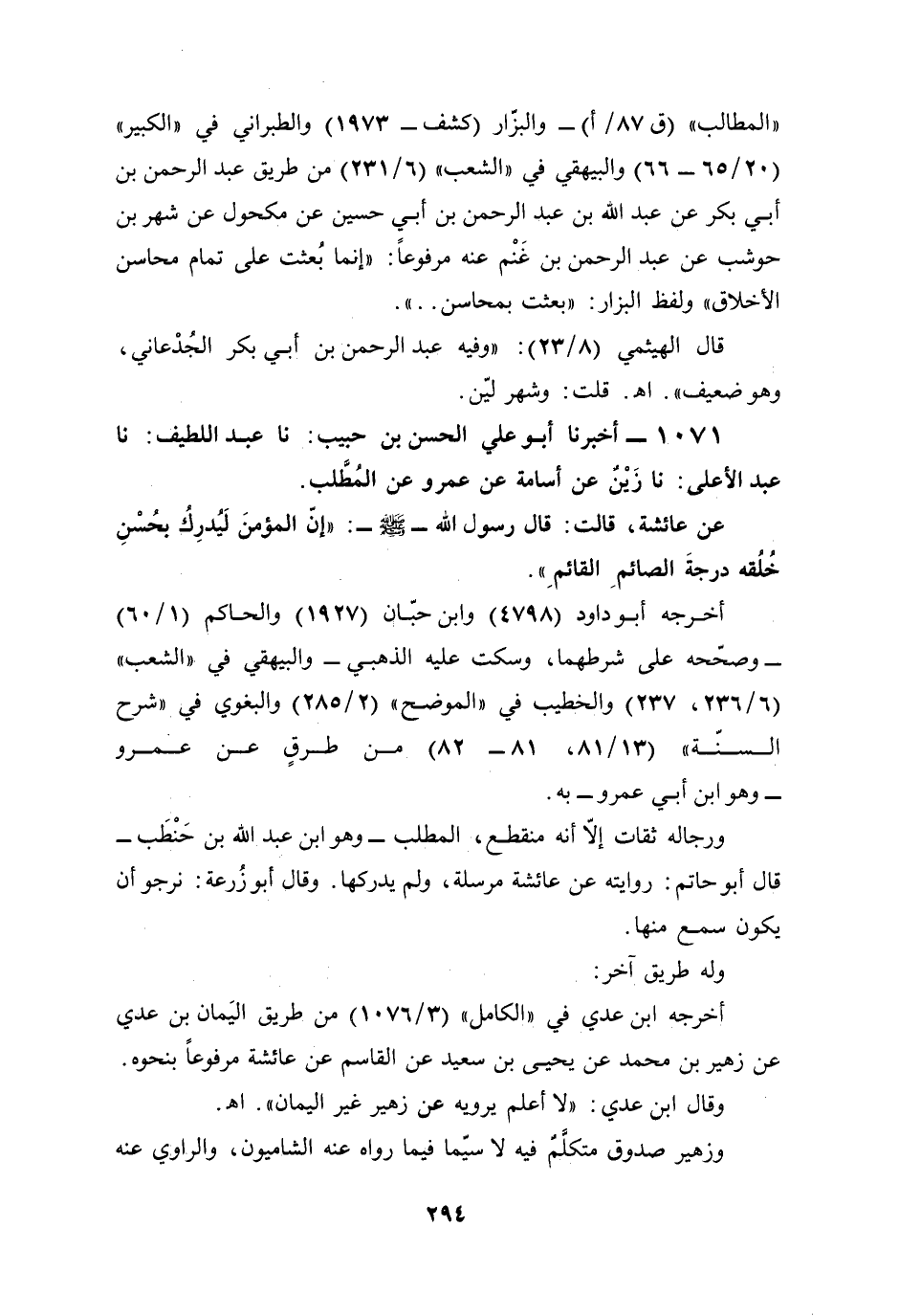 1071 - أخبرنا أبو علي الحسن بن حبيب: نا عبد اللطيف: نا عبد الأعلى: نا زَيْنٌ عن أسامة عن عمرو عن المُطَّلب.