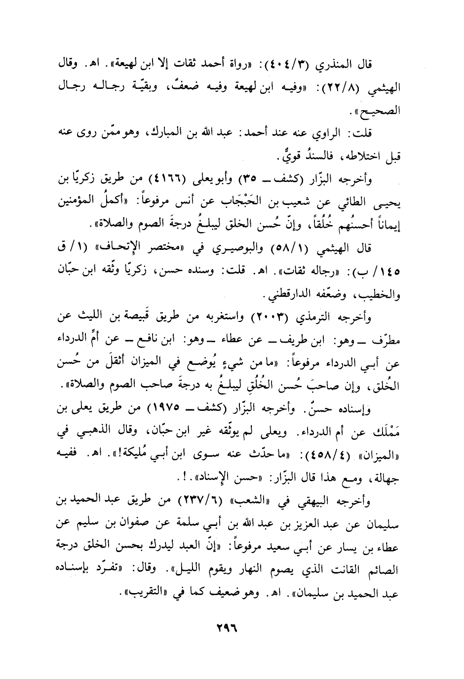 وأخرجه الترمذي (2003) واستغربه من طريق قَبيصة بن الليث عن مطرّف -وهو: ابن طريف- عن عطاء -وهو: ابن نافع- عن أمِّ الدرداء عن أبي الدرداء مرفوعًا: "ما من شيءٍ يُوضع في الميزان أثقلَ من حُسن الخُلق، وإن صاحبَ حُسن الخُلُقِ ليبلغُ به درجةَ صاحب الصوم والصلاة".