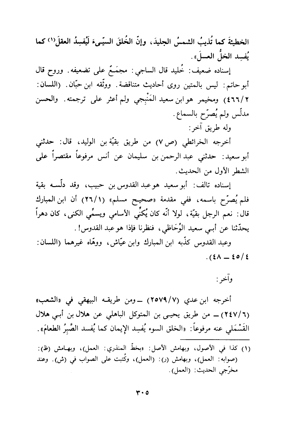 وعبد القدوس كذّبه ابن المبارك وابن عيّاش، ووهّاه غيرهما (اللسان: 4/ 45 - 48).