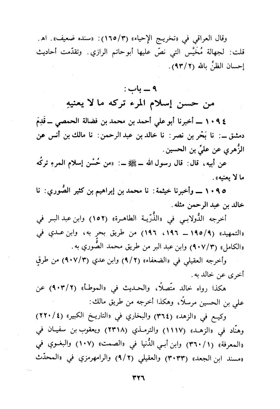9 - باب: من حسن إسلام المرء تركه ما لا يعنيهِ