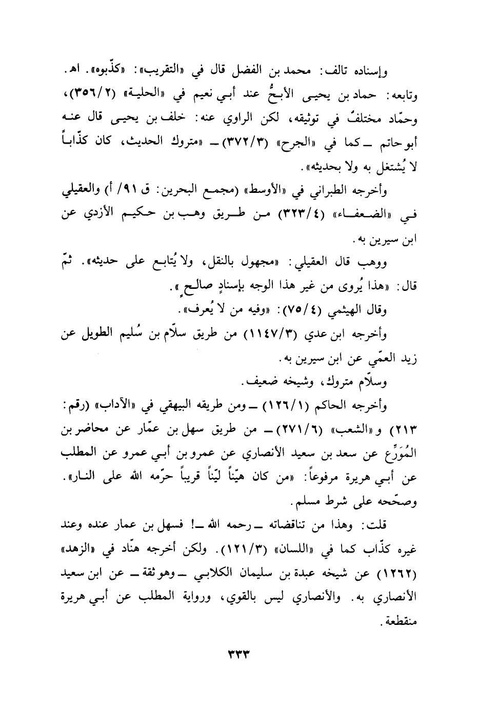 وأخرجه الطبراني في "الأوسط" (مجمع البحرين: ق 91/ أ) والعقيلي في "الضعفاء" (4/ 323) من طريق وهب بن حكيم الأزدي عن ابن سيرين به.