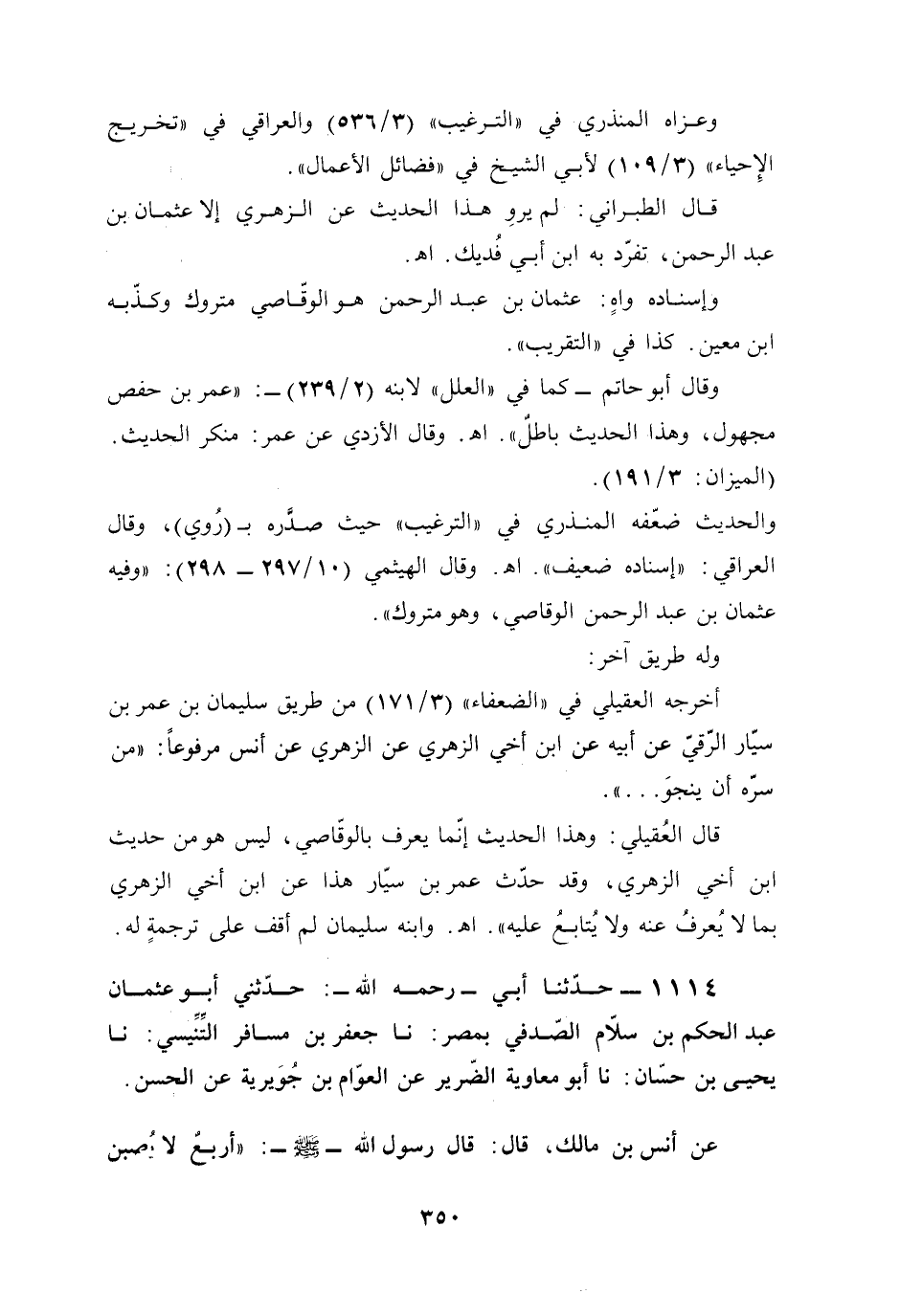 1114 - حدّثنا أبي -رحمه الله-: حدّثني أبو عثمان عبد الحكم بن سلّام الصّدفي بمصر: نا جعفر بن مسافر التِّنِّيسي: نا يحيى بن حسّان: نا أبو معاوية الضّرير عن العوّام بن جُوَيرية عن الحسن.