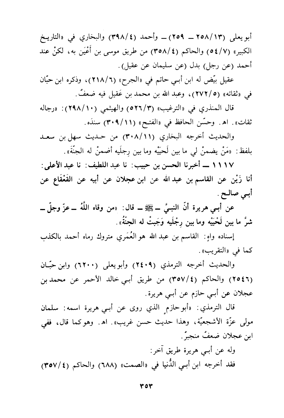 1117 - أخبرنا الحسن بن حبيب: نا عبد اللطيف: نا عبد الأعلى: أنا زَيْن عن القاسم بن عبد الله عن ابن عجلان عن أبيه عن القَعْقَاع عن أبي صالح.