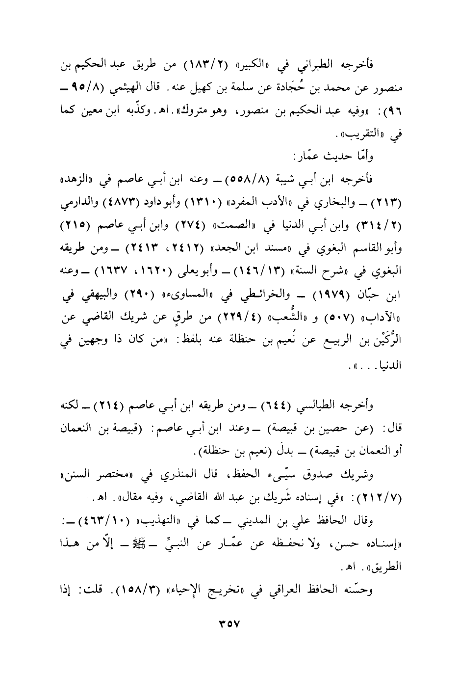 وقال الحافظ علي بن المديني -كما في "التهذيب" (10/ 463) -: "إسناده حسن، ولا نحفظه عن عمّار عن النبيِّ - صلى الله عليه وسلم - إلّا من هذا الطريق". أهـ.