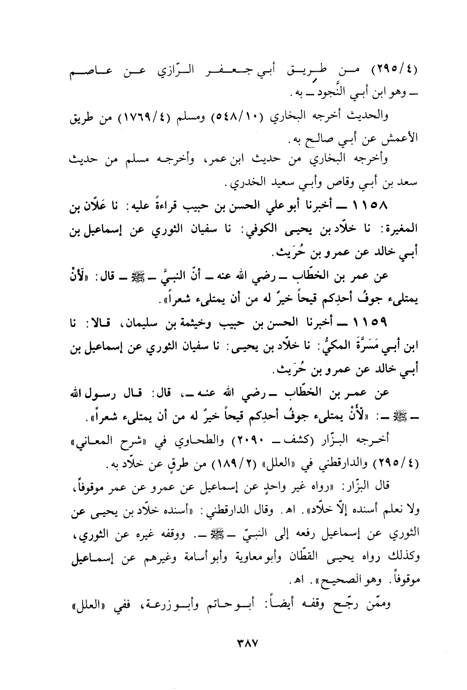 1158 - أخبرنا أبو علي الحسن بن حبيب قراءةً عليه: نا عَلّان بن المغيرة: نا خلّاد بن يحيى الكوفي: نا سفيان الثوري عن إسماعيل بن أبي خالد عن عمرو بن حُرَيث.