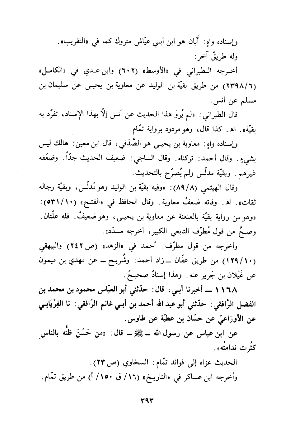 1168 - أخبرنا أبي، قال: حدّثني أبو العبّاس محمود بن محمد بن الفضل الرَّافقي: حدّثني أبو عبد الله أحمد بن أبي غانم الرّافقي: نا الفِرْيَابي عن الأوزاعيّ عن حسّان بن عطيّة عن طاوس.