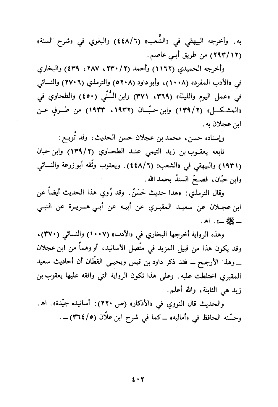 وقال الترمذي: "هذا حديث حَسَنٌ. وقد رُوي هذا الحديث أيضًا عن ابن عجلان عن سعيد المقبري عن أبيه عن أبي هريرة عن النبي - صلى الله عليه وسلم -". أهـ.