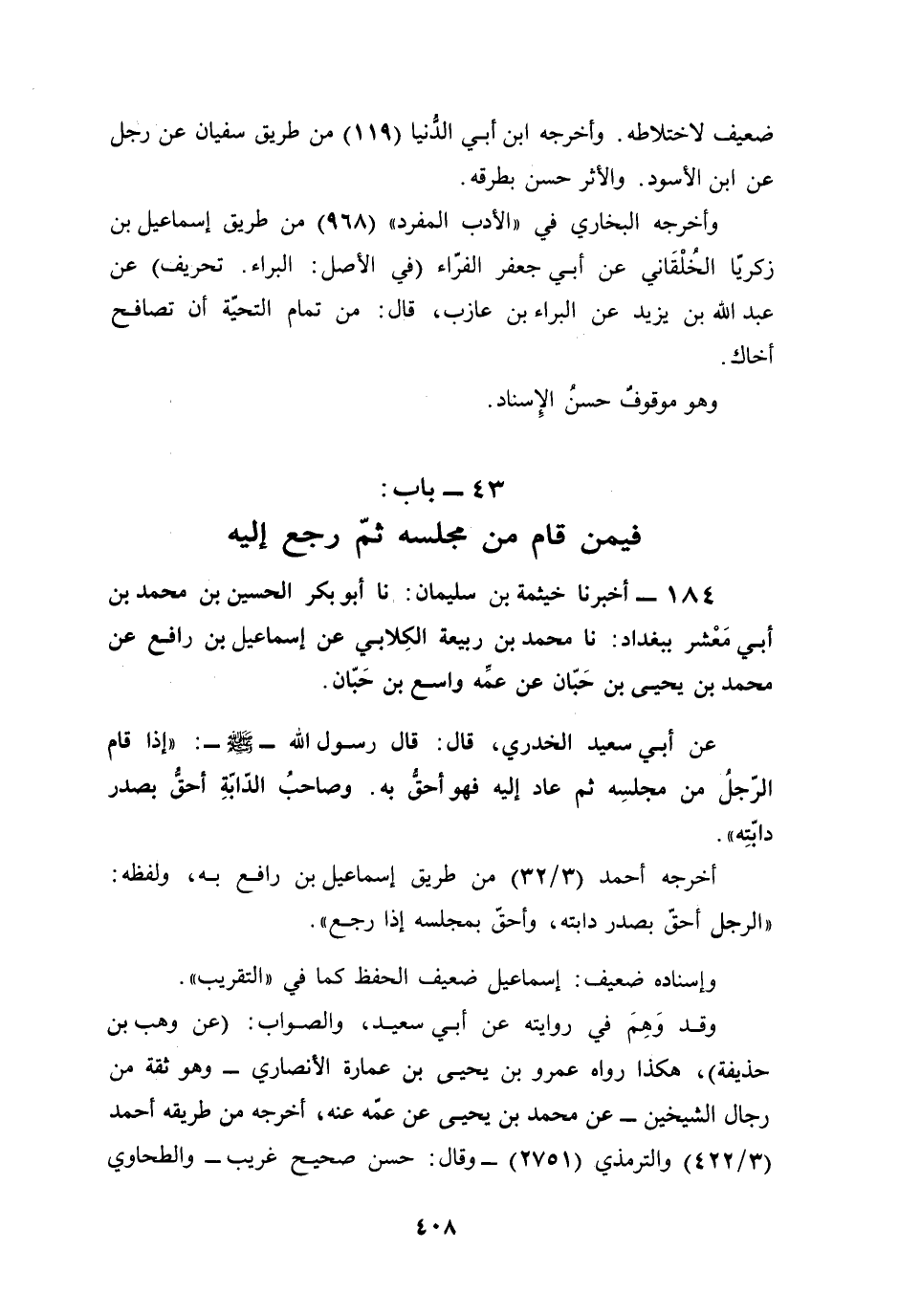43 - باب: فيمن قام من مجلسه ثمّ رجع إليه