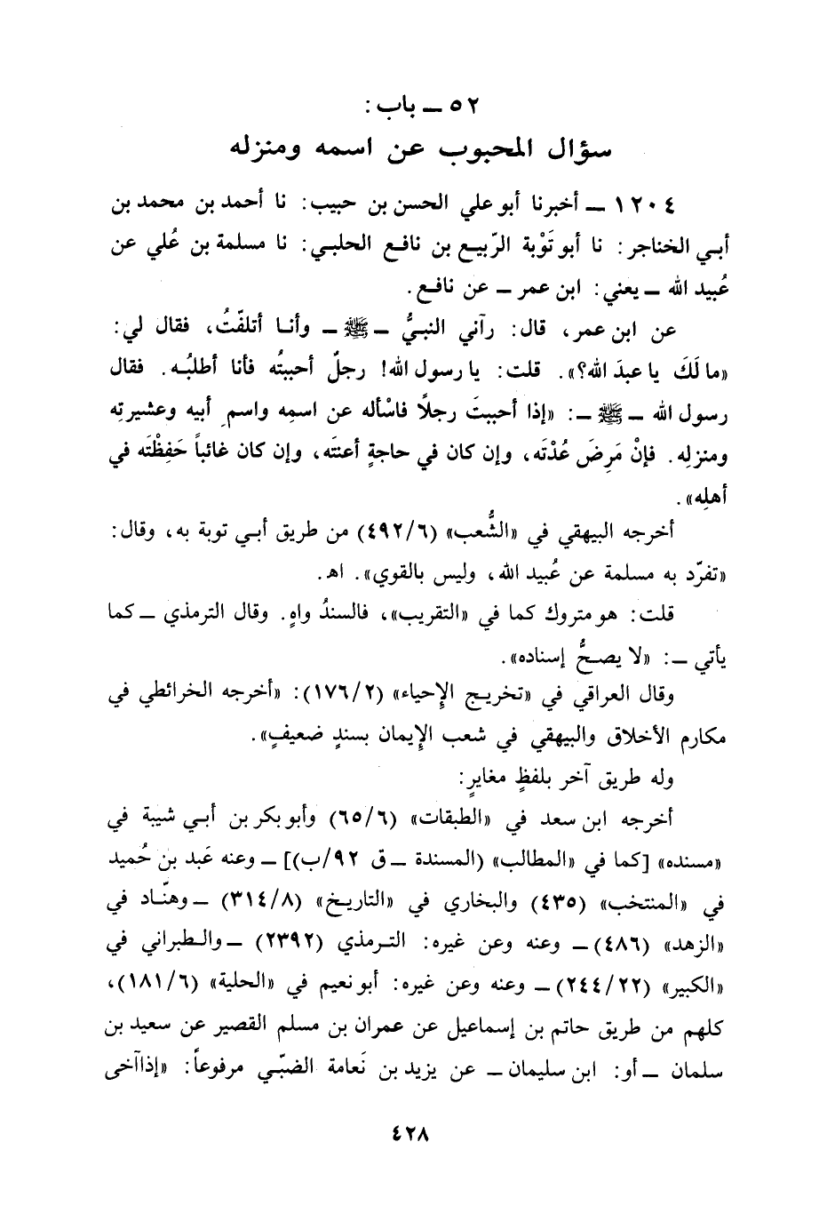 52 - باب: سؤال المحبوب عن اسمه ومنزله