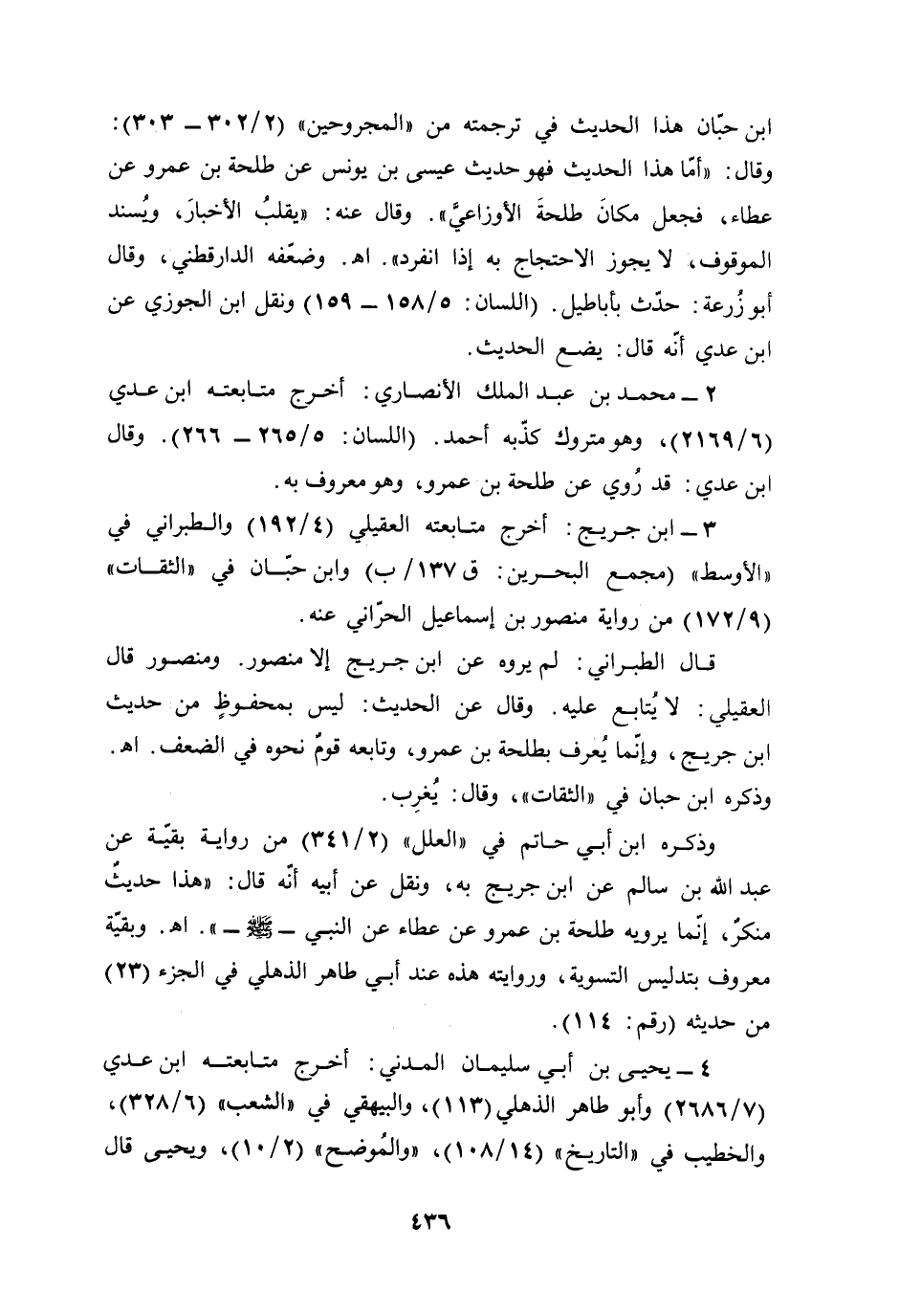 2 - محمد بن عبد الملك الأنصاري: أخرج متابعته ابن عدي (6/ 2169)، وهو متروك كذّبه أحمد. (اللسان: 5/ 265 - 266). وقال ابن عدي: قد رُوي عن طلحة بن عمرو، وهو معروف به.