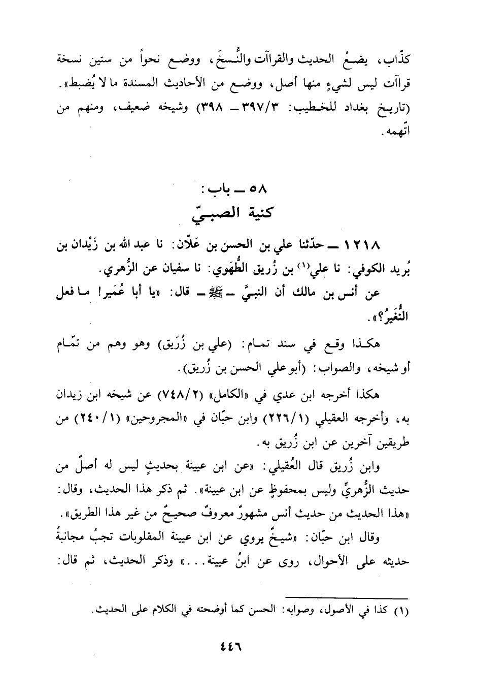 1218 - حدّثنا علي بن الحسن بن عَلّان: نا عبد الله بن زَيْدان بن بُريد الكوفي: نا علي (¬1) بن زُريق الطُّهَوي: نا سفيان عن الزُّهري.