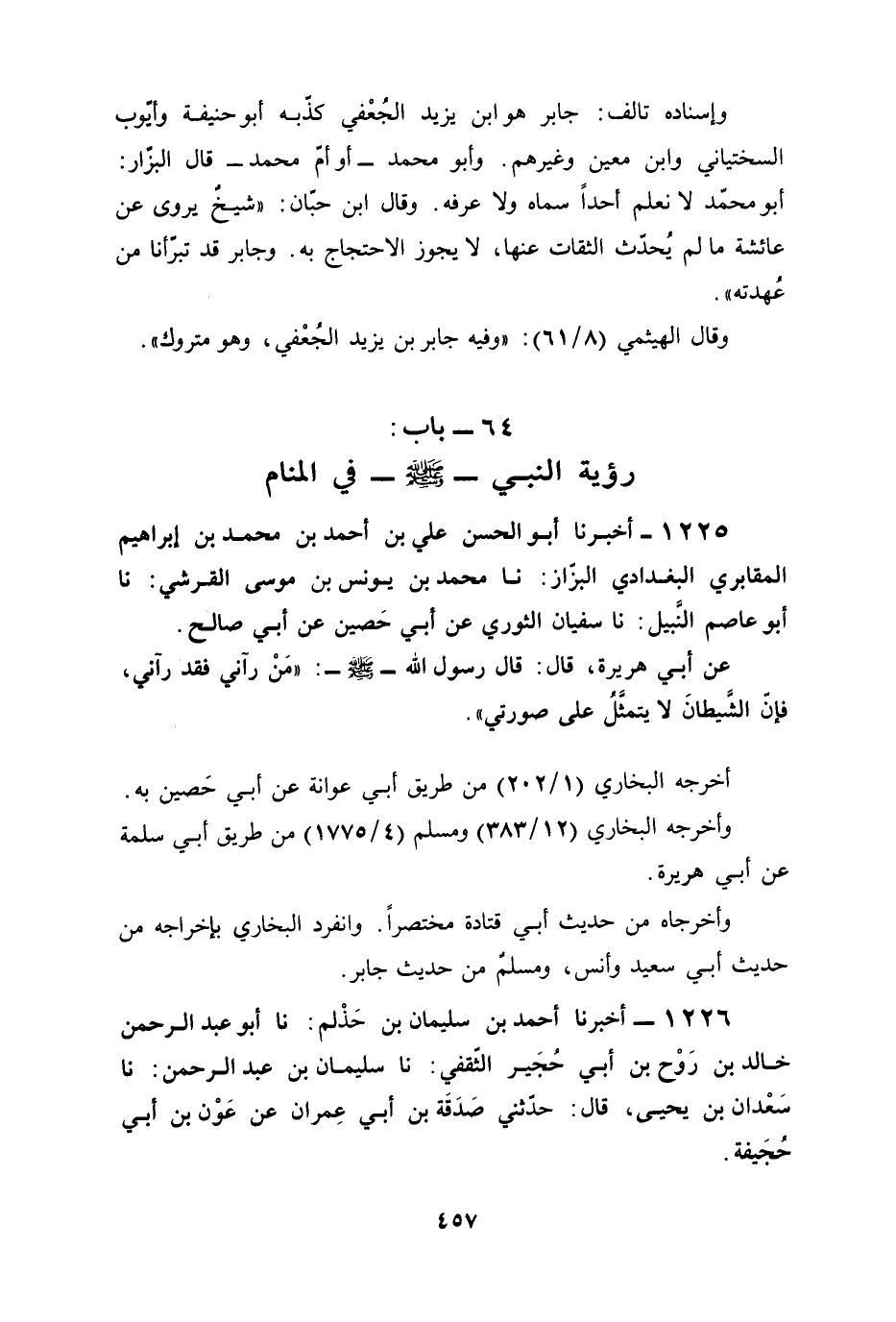 1225 - أخبرنا أبو الحسن علي بن أحمد بن محمد بن إبراهيم المقابري البغدادي البزّاز: نا محمد بن يونس بن موسى القرشي: نا أبو عاصم النَّبيل: نا سفيان الثوري عن أبي حَصين عن أبي صالح.