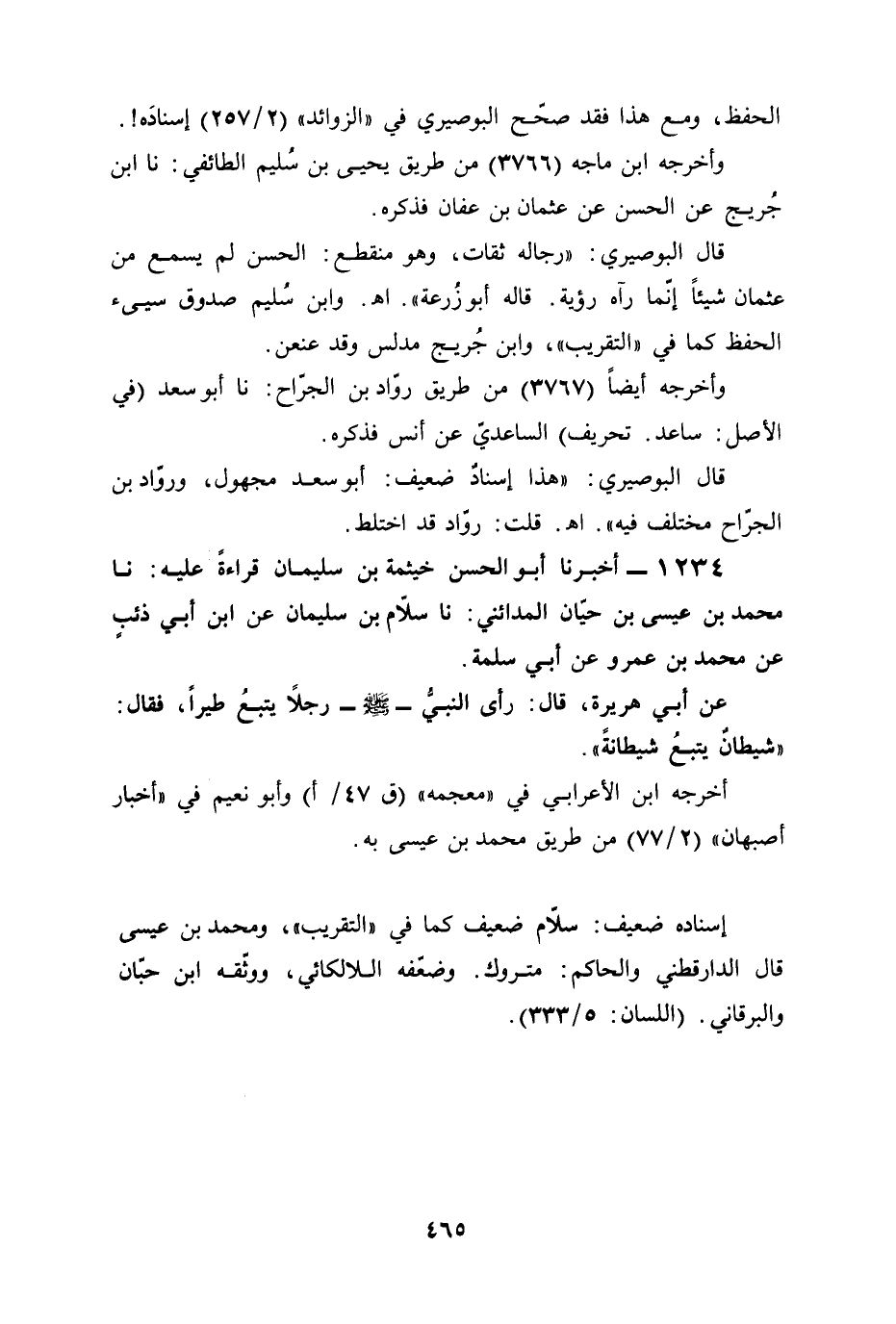 1234 - أخبرنا أبو الحسن خيثمة بن سليمان قراءةً عليه: نا محمَّد بن عيسى بن حيّان المدائني: نا سلّام بن سليمان عن ابن أبي ذئبٍ عن محمد بن عمرو عن أبي سلمة.