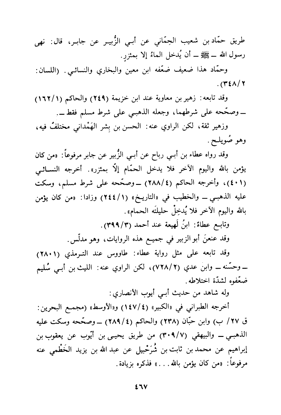 طريق حمّاد بن شعيب الحِمّاني عن أبي الزُّبير عن جابر، قال: نهى رسول الله -صلى الله عليه وسلم -أن يُدخل الماءُ إلا بمئزرٍ.