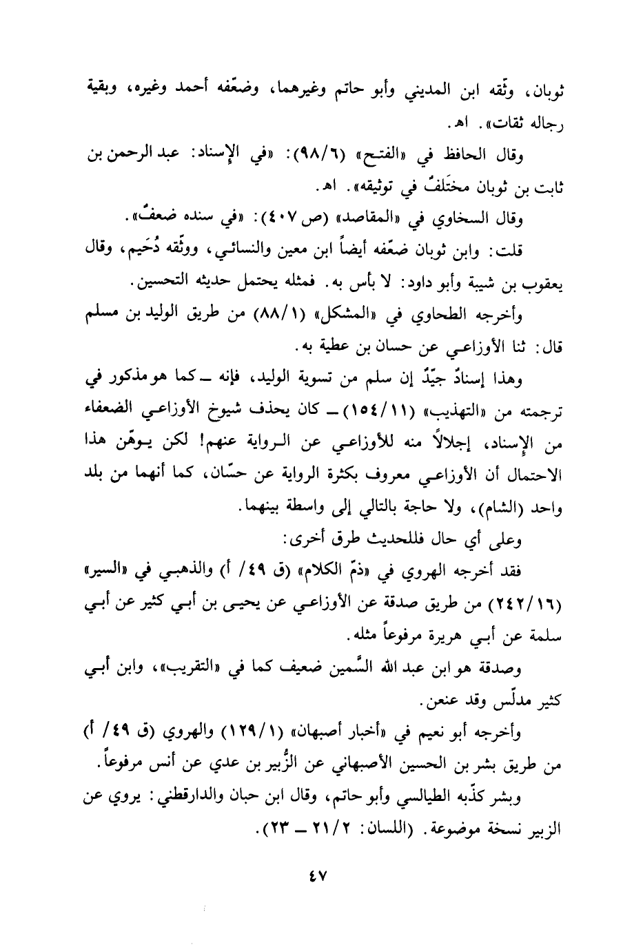 قلت: وابن ثوبان ضعّفه أيضًا ابن معين والنسائي، ووثّقه دُحَيم، وقال يعقوب بن شيبة وأبو داود: لا بأس به. فمثله يحتمل حديثه التحسين.