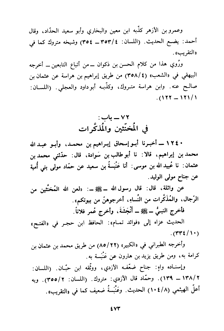 72 - باب: في المُخنّثين والمُذكَّرات