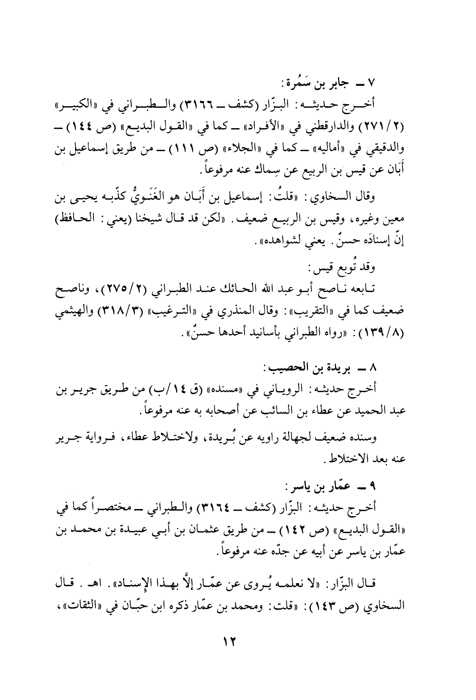 قال البزّار: "لا نعلمه يُروى عن عمّار إلَّا بهذا الِإسناد". أهـ. قال السخاوي (ص 143): "قلت: ومحمد بن عمّار ذكره ابن حبّان في "الثقات"،