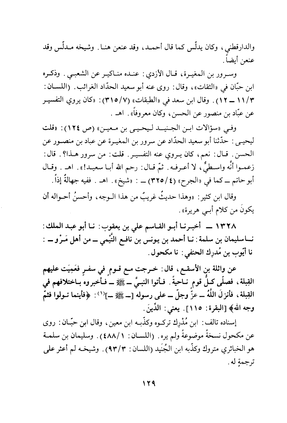 وسرور بن المغيرة، قال الأزدي: عنده مناكير عن الشعبي. وذكره ابن حبّان في "الثقات"، وقال: روى عنه أبو سعيد الحدّاد الغرائب. (اللسان: 3/ 11 - 12). وقال ابن سعد في "الطبقات" (7/ 315): "كان يروي التفسير عن عبّاد بن منصور عن الحسن، وكان معروفًا". أهـ.