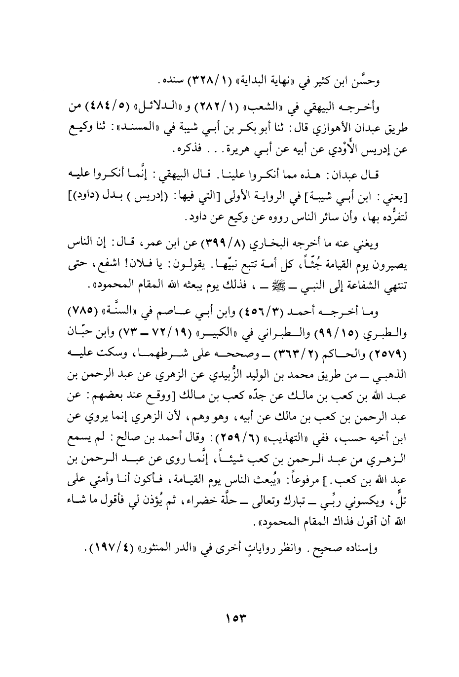 ويغني عنه ما أخرجه البخاري (8/ 399) عن ابن عمر، قال: إن الناس يصيرون يوم القيامة جُثًّا، كل أمة تتبع نبيّها. يقولون: يا فلان! اشفع، حتى تنتهي الشفاعة إلى النبي - صلى الله عليه وسلم -، فذلك يوم يبعثه الله المقام المحمود".