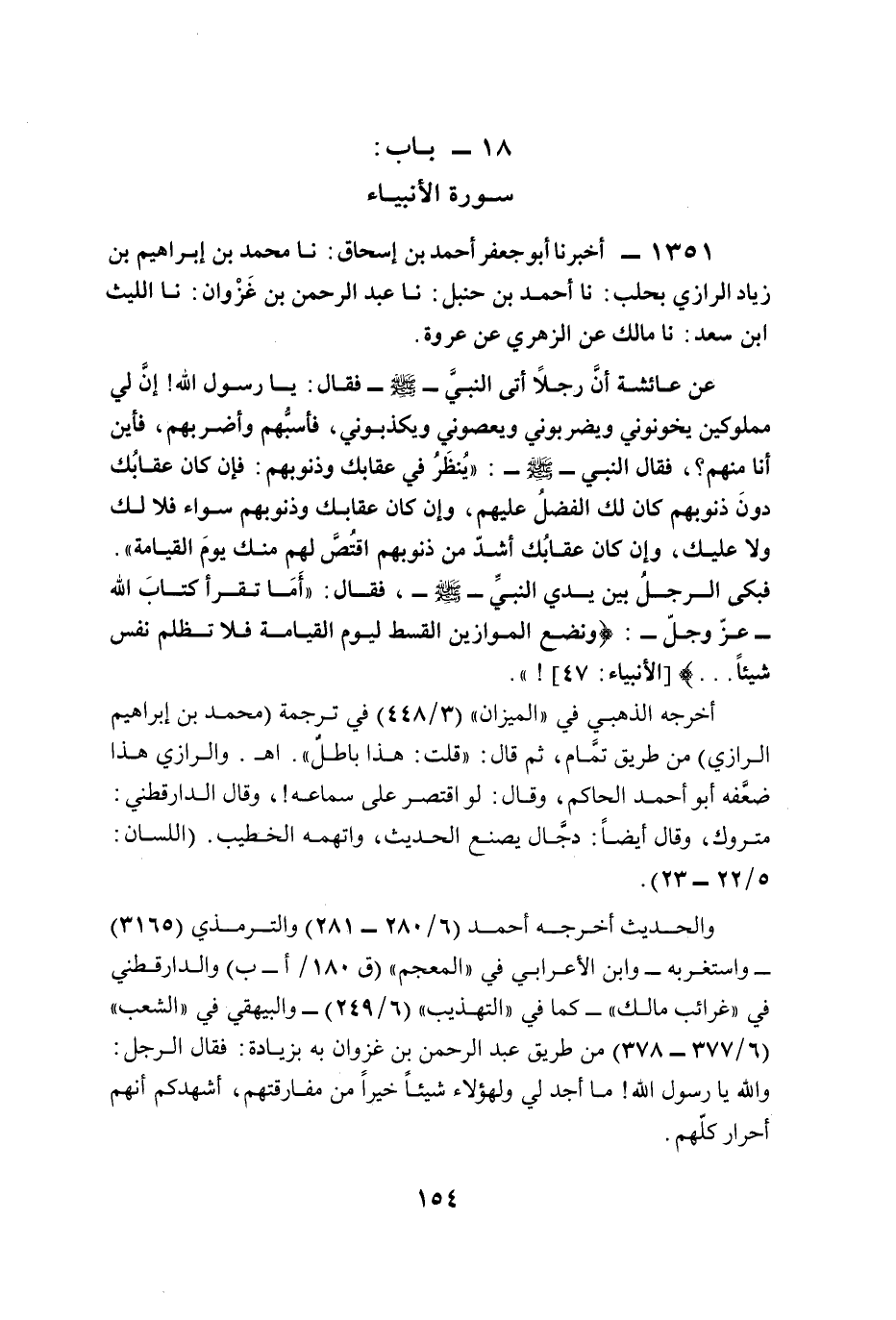 1351 - أخبرنا أبو جعفر أحمد بن إسحاق: نا محمد بن إبراهيم بن زياد الرازي بحلب: نا أحمد بن حنبل: نا عبد الرحمن بن غَزْوان: نا الليث ابن سعد: نا مالك عن الزهري عن عروة.