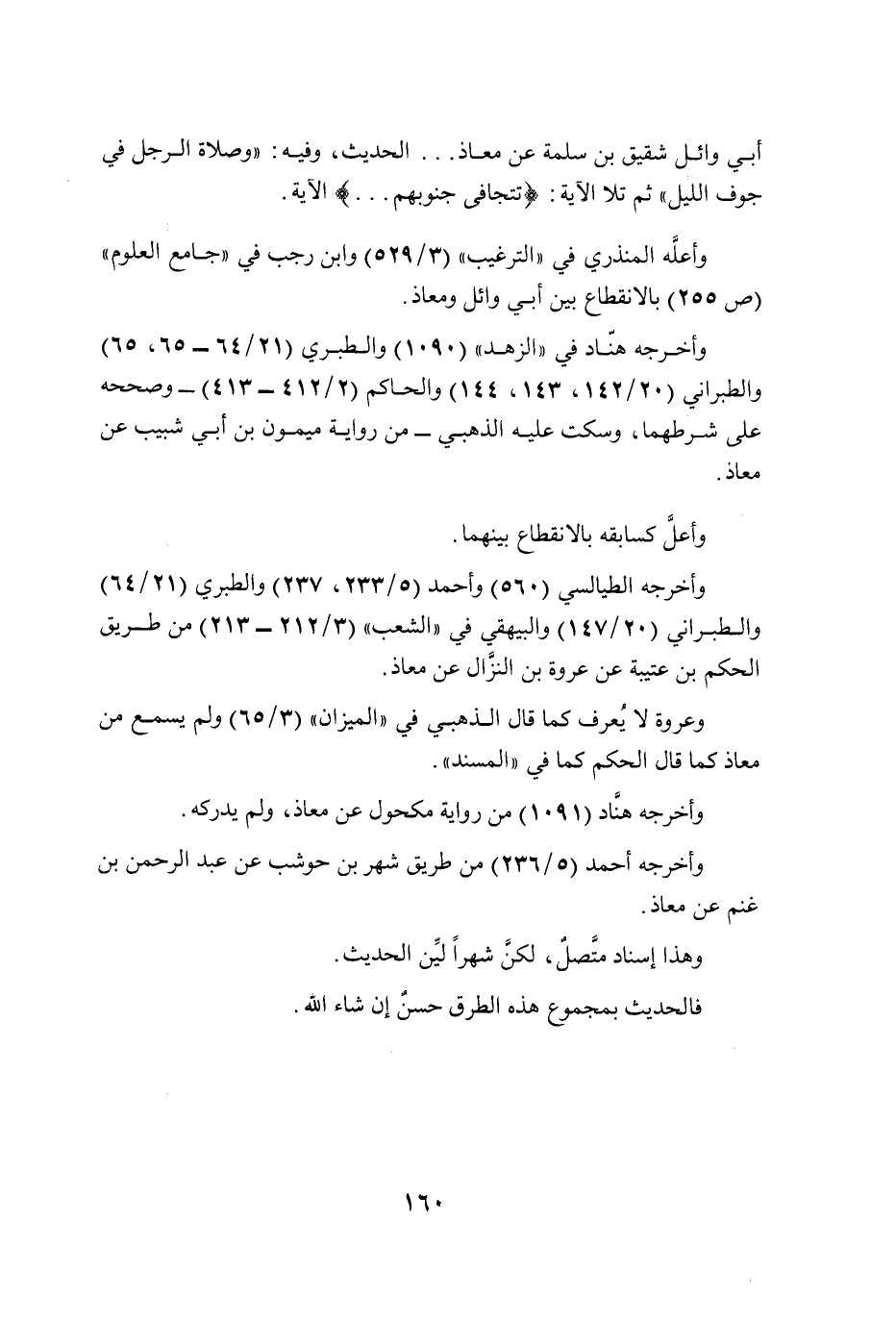 وأعلَّه المنذري في "الترغيب" (3/ 529) وابن رجب في "جامع العلوم" (ص 255) بالانقطاع بين أبي وائل ومعاذ.