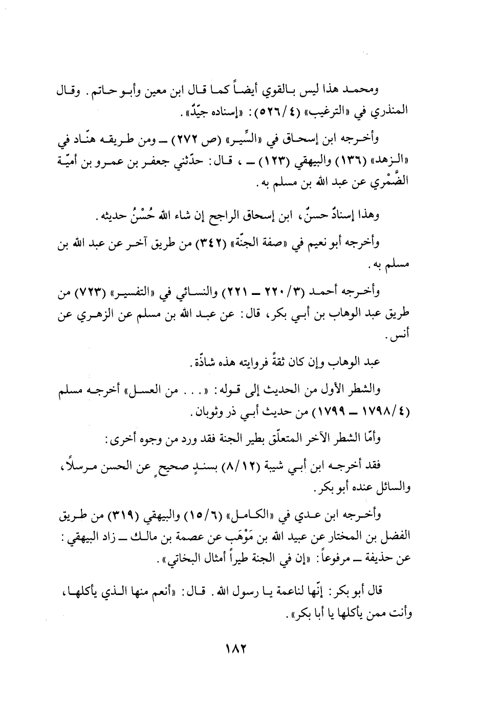 وأمّا الشطر الآخر المتعلّق بطير الجنة فقد ورد من وجوه أخرى: