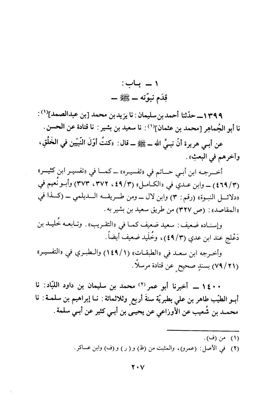 1 - باب: قِدَم نبوّته (صلى الله عليه وسلم)