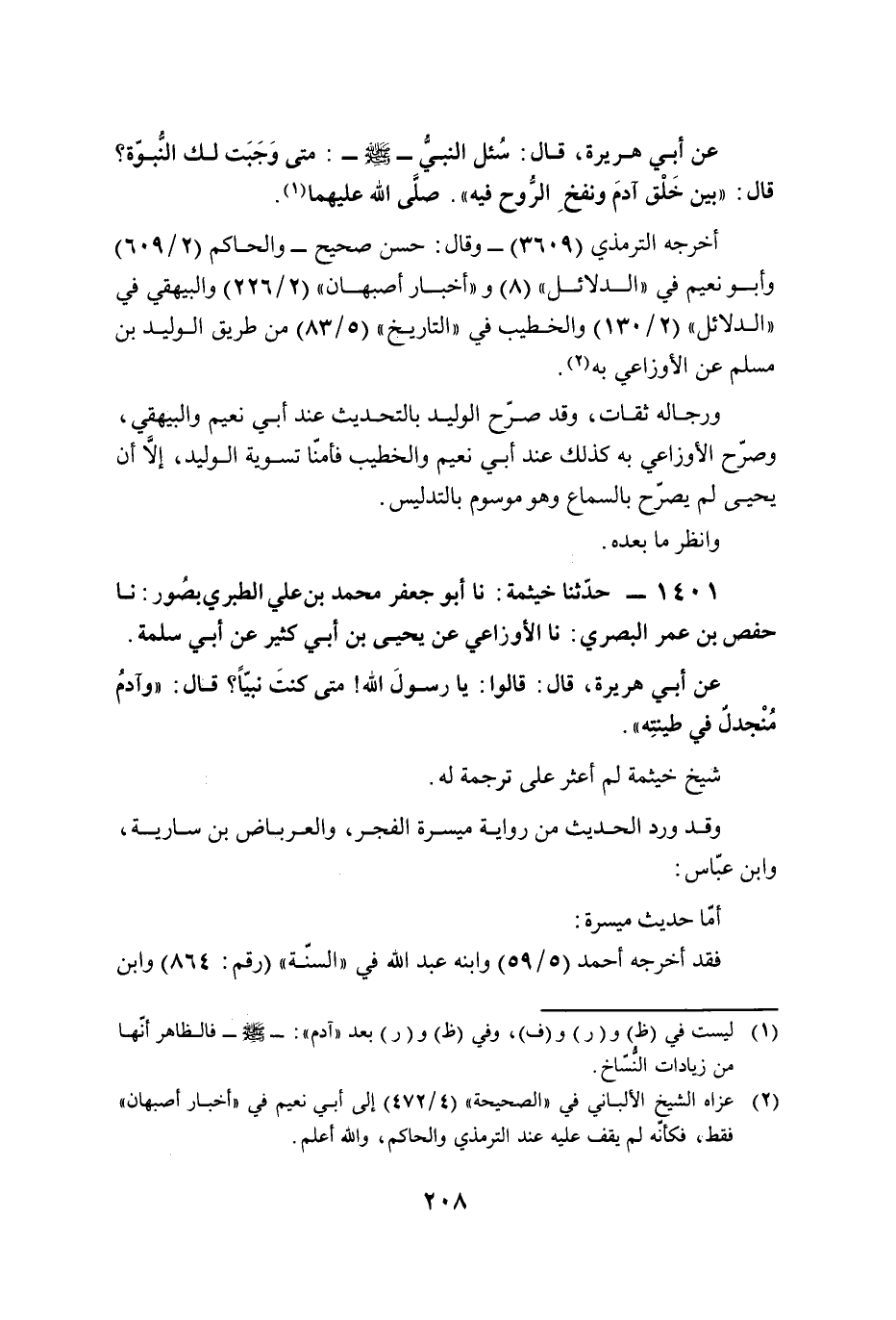 ورجاله ثقات، وقد صرّح الوليد بالتحديث عند أبي نعيم والبيهقي، وصرّح الأوزاعي به كذلك عند أبي نعيم والخطيب فأمنّا تسوية الوليد، إلَّا أن يحيى لم يصرّح بالسماع وهو موسوم بالتدليس.