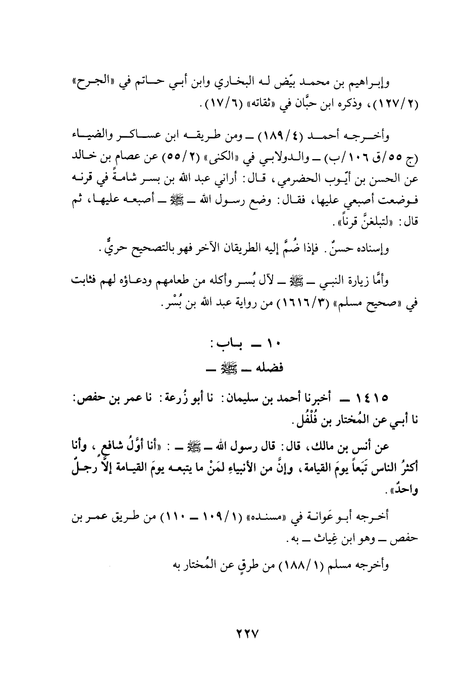 1415 - أخبرنا أحمد بن سليمان: نا أبو زُرعة: نا عمر بن حفص: نا أبي عن المُختار بن فُلْفُل.