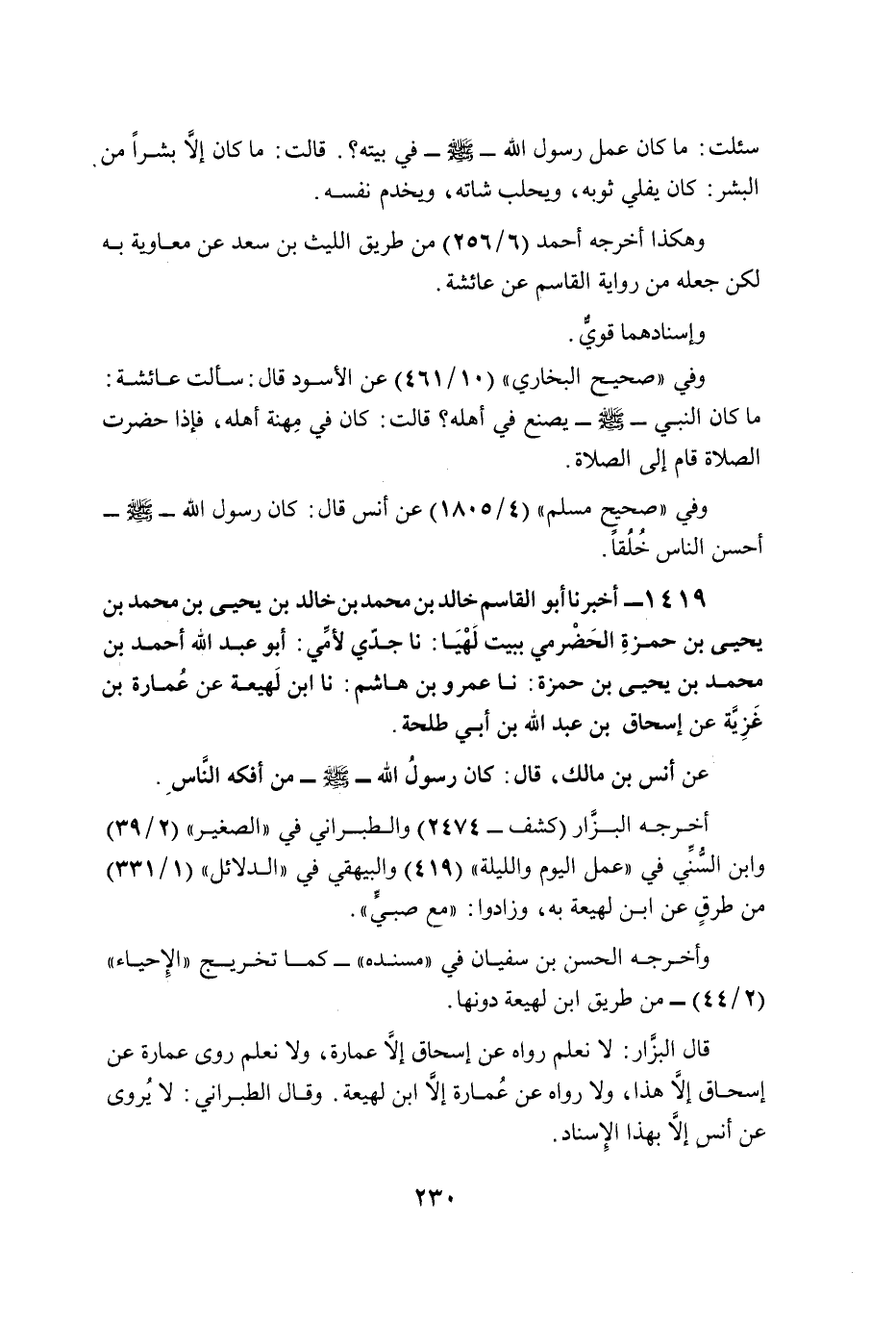 1419 - أخبرنا أبو القاسم خالد بن محمد بن خالد بن يحيى بن محمد بن يحيى بن حمزةِ الحَضْرمي ببيت لَهْيَا: نا جدّي لأمِّي: أبو عبد الله أحمد بن محمد بن يحيى بن حمزة: نا عمرو بن هاشم: نا ابن لَهيعة عن عُمارة بن غَزِيَّة عن إسحاق بن عبد الله بن أبي طلحة.