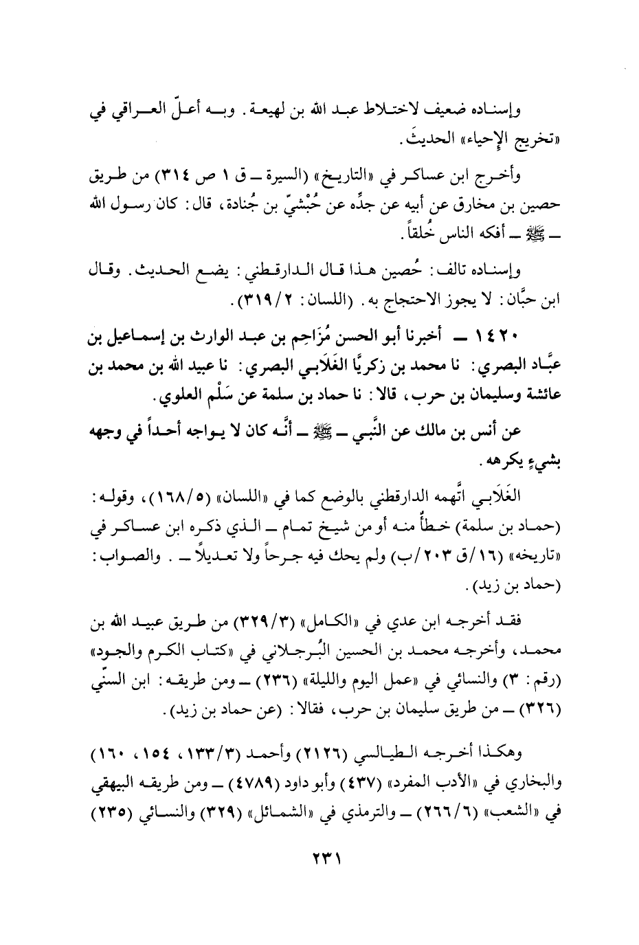1420 - أخبرنا أبو الحسن مُزَاحِم بن عبد الوارث بن إسماعيل بن عبَّاد البصري: نا محمد بن زكريَّا الغَلاَبي البصري: نا عبيد الله بن محمد بن عائشة وسليمان بن حرب، قالا: نا حماد بن سلمة عن سَلْم العلوي.