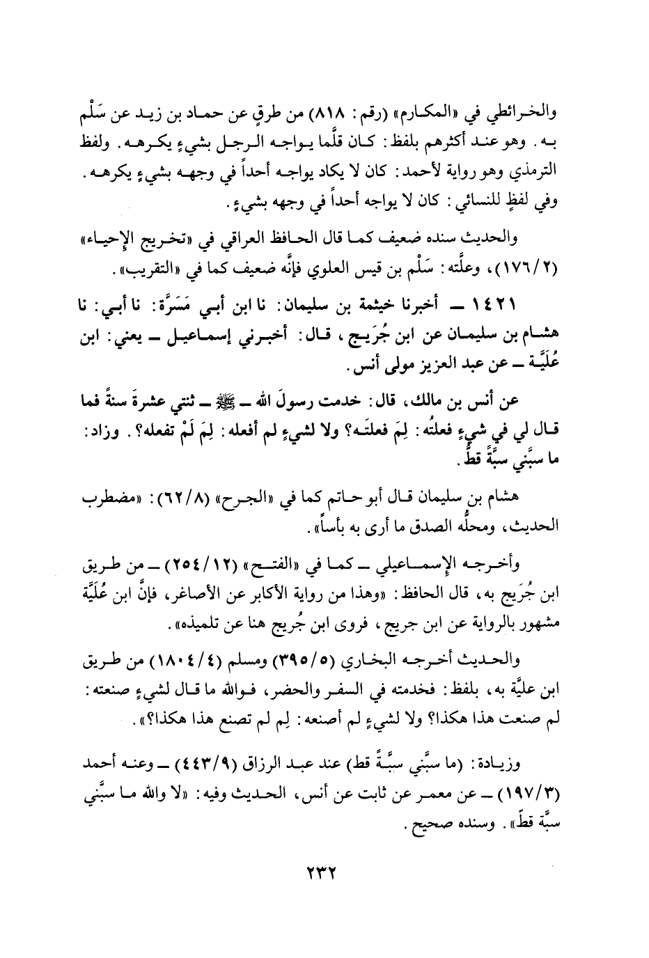 1421 - أخبرنا خيثمة بن سليمان: نا ابن أبي مَسَرَّة: نا أبي: نا هشام بن سليمان عن ابن جُرَيج، قال: أخبرني إسماعيل -يعني: ابن عُلَيَّة- عن عبد العزيز مولى أنس.