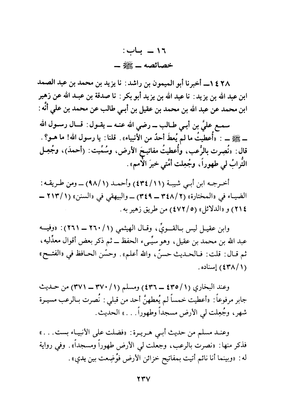 16 - باب: خصائصه (صلى الله عليه وسلم)