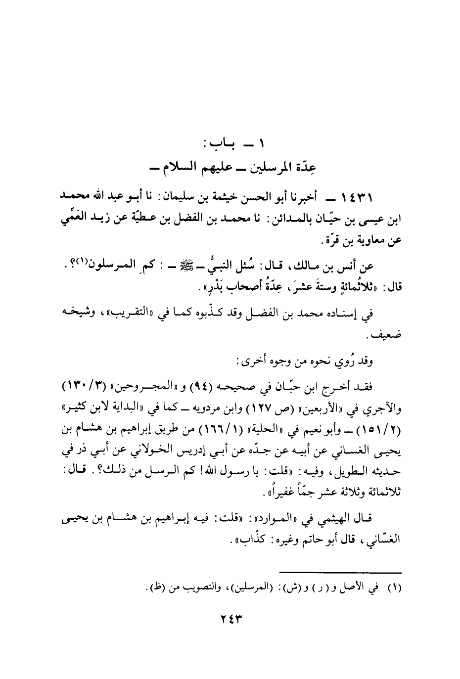 1 - باب: عِدّة المرسلين (عليهم السلام)