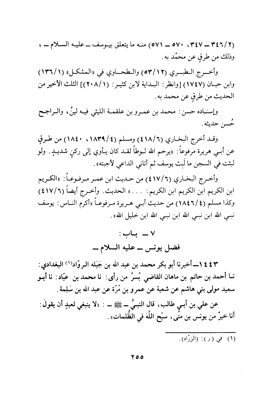 (2/ 346 - 347، 570 - 571) منه ما يتعلق بيوسف -عليه السلام-، وذلك من طرقٍ عن محمّد به.