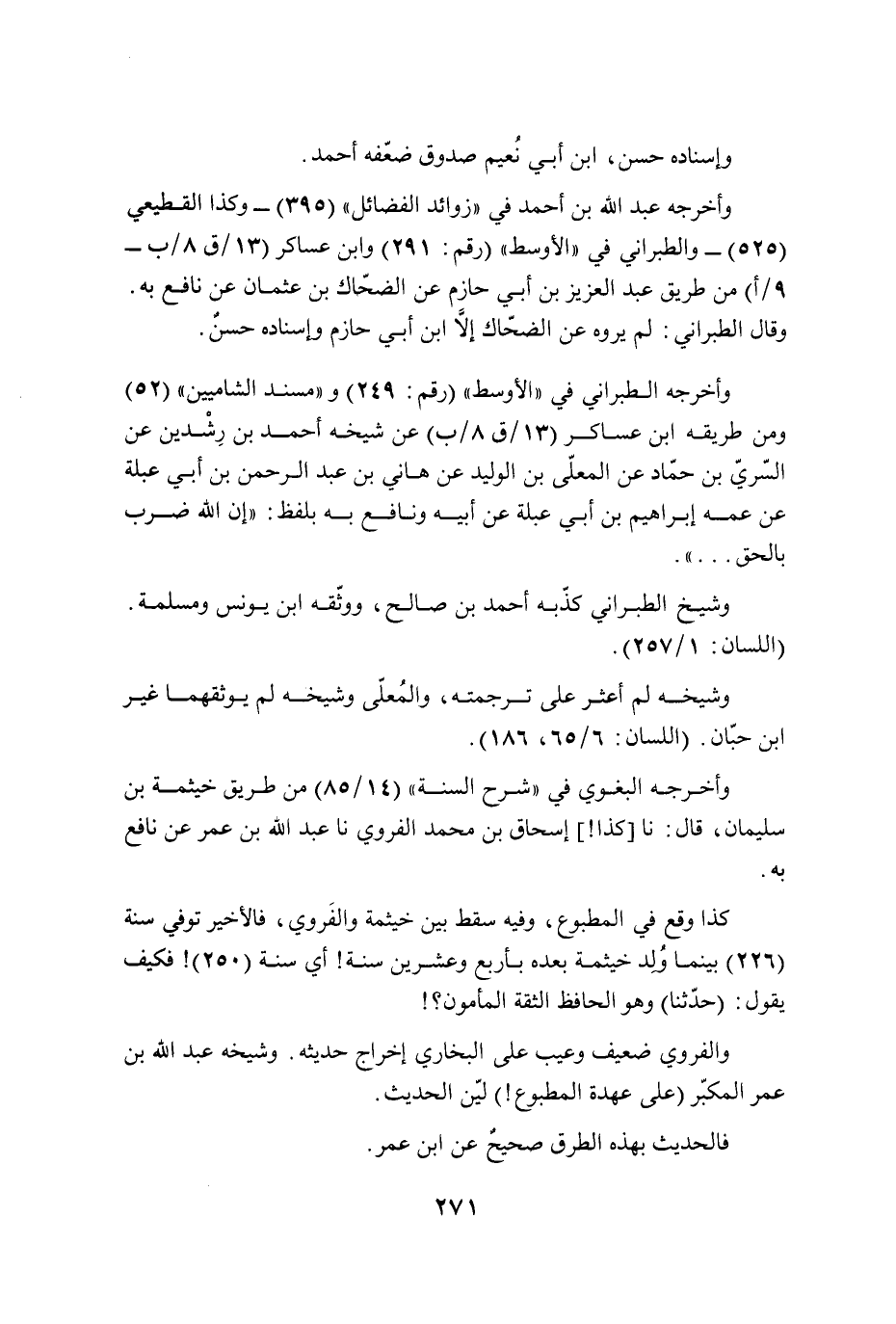 وأخرجه عبد الله بن أحمد في "زوائد الفضائل" (395) -وكذا القطيعي (525) - والطبراني في "الأوسط" (رقم: 291) وابن عساكر (13/ ق 8/ ب- 9/ أ) من طريق عبد العزيز بن أبي حازم عن الضحّاك بن عثمان عن نافع به. وقال الطبراني: لم يروه عن الضحّاك إلَّا ابن أبي حازم وإسناده حسنٌ.