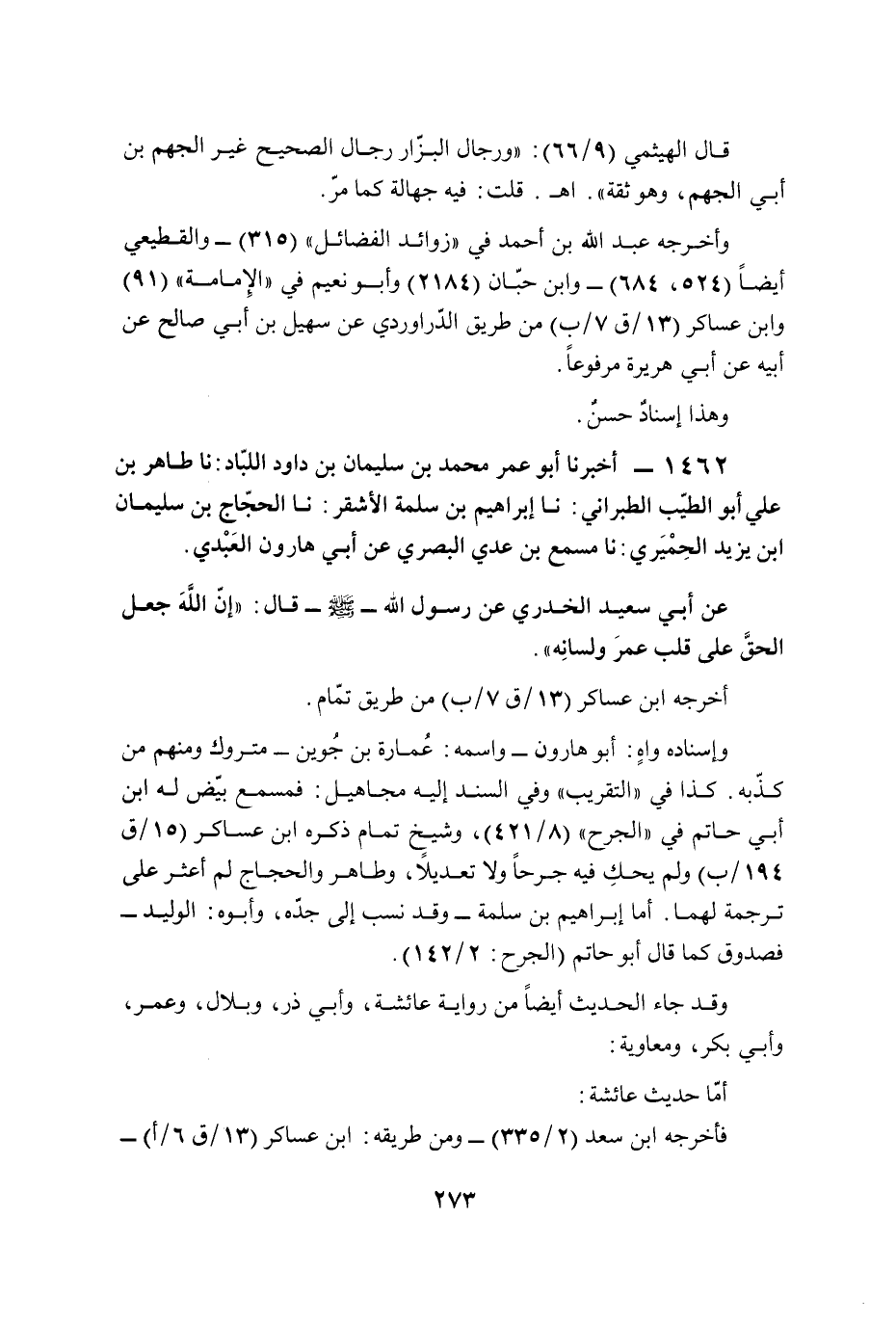 1462 - أخبرنا أبو عمر محمد بن سليمان بن داود اللبّاد: نا طاهر بن علي أبو الطيّب الطبراني: نا إبراهيم بن سلمة الأشقر: نا الحجّاج بن سليمان ابن يزيد الحِمْيَري: نا مسمع بن عدي البصري عن أبي هارون العَبْدي.