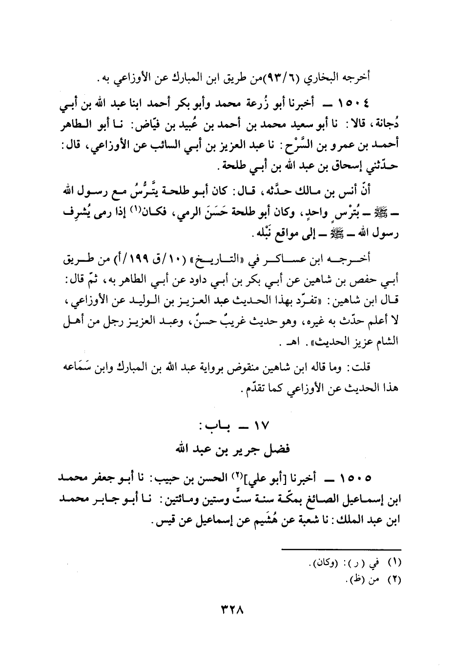 1505 - أخبرنا [أبو علي] (¬2) الحسن بن حبيب: نا أبو جعفر محمَّد ابن إسماعيل الصائغ بمكّة سنة ستٍّ وستين ومائتين: نا أبو جابر محمَّد ابن عبد الملك: نا شعبة عن هُشَيم عن إسماعيل عن قيس.