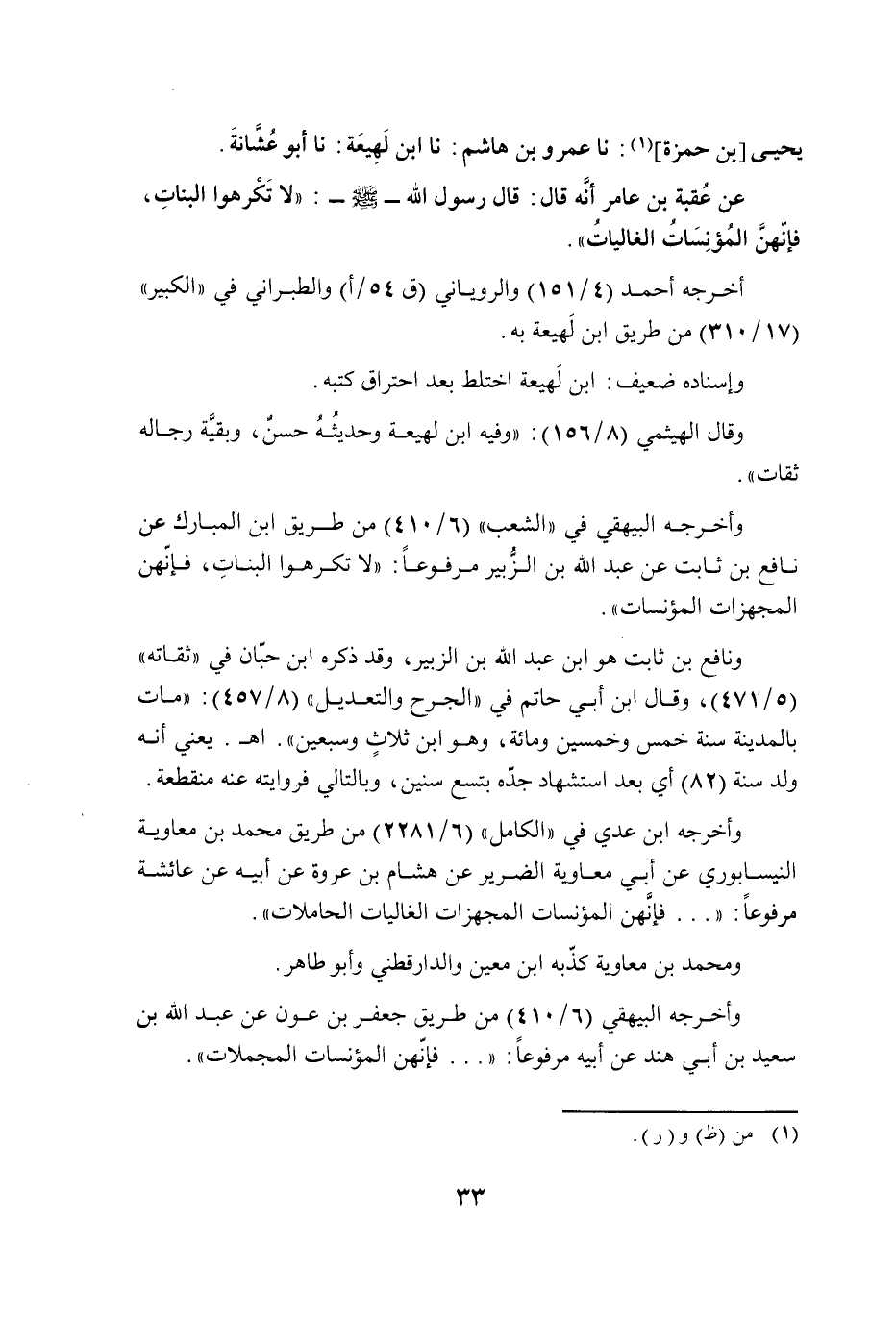 عن عُقبة بن عامر أنَّه قال: قال رسول الله - صلى الله عليه وسلم -: "لا تَكْرهوا البناتِ، فإنّهنَّ المُؤنِسَاتُ الغالياتُ".