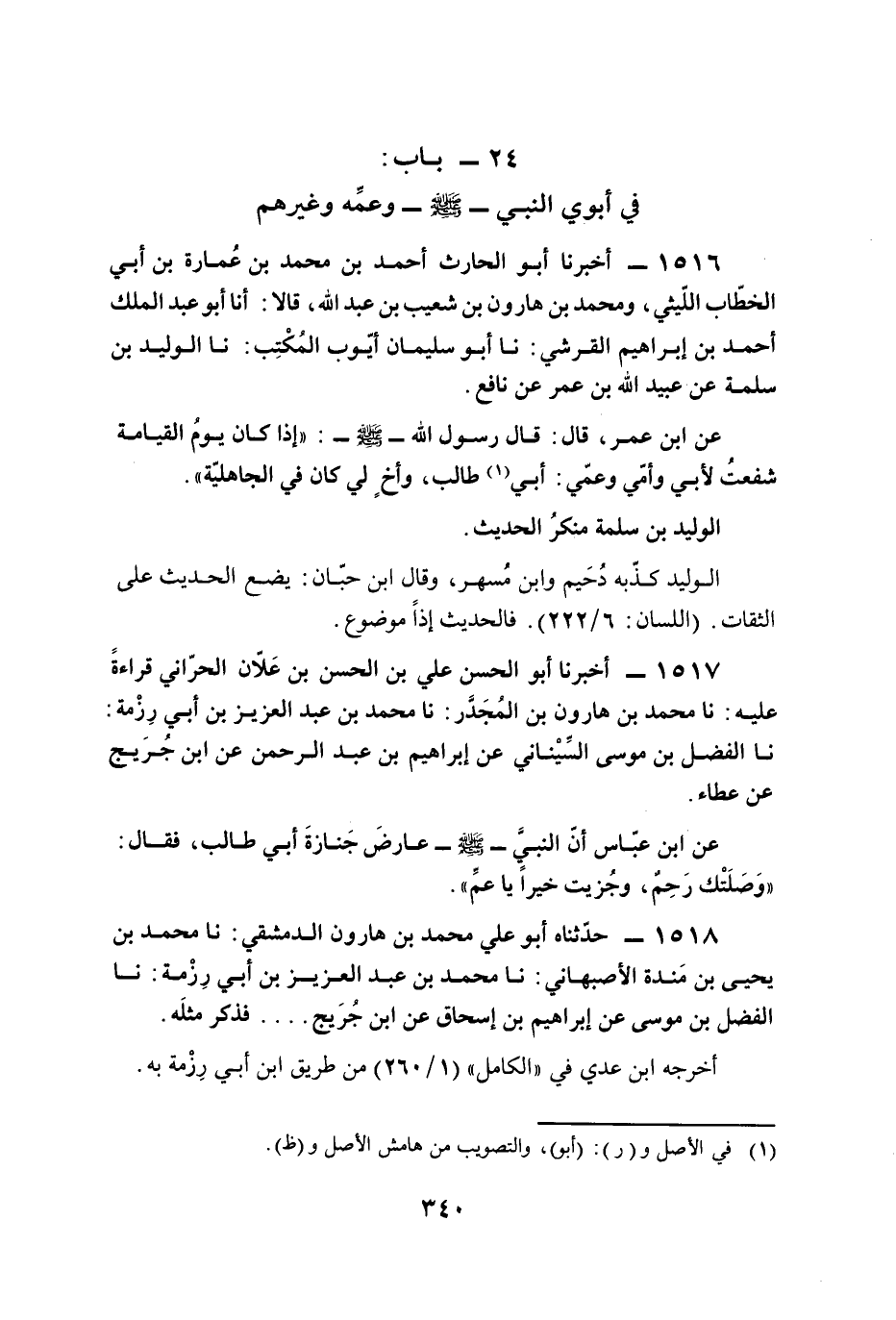 24 - باب: في أبوي النبي (صلى الله عليه وسلم) وعمِّه وغيرهم