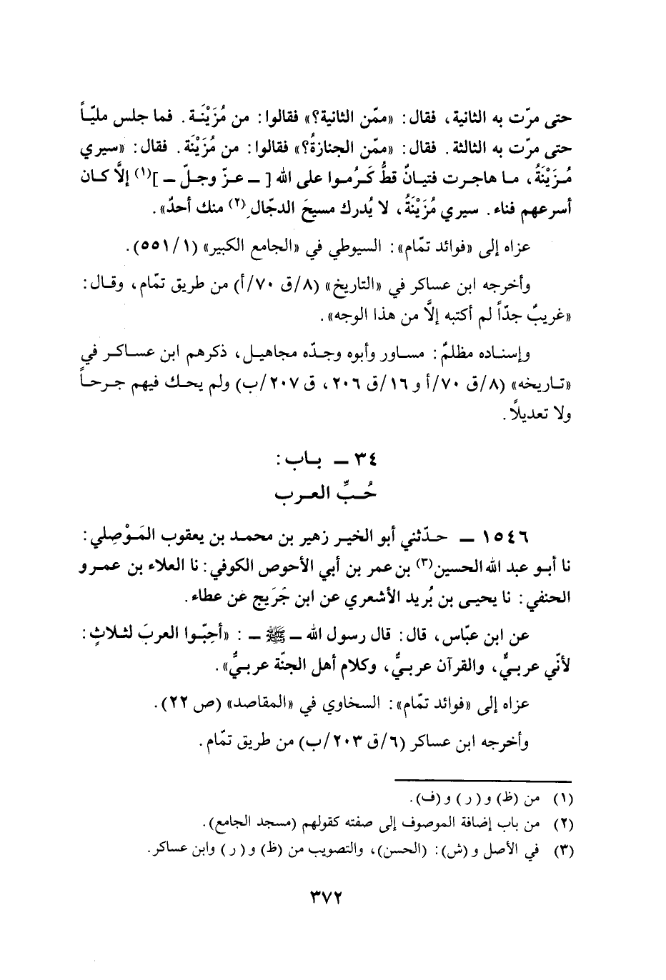 1546 - حدّثني أبو الخير زهير بن محمَّد بن يعقوب المَوْصِلي: نا أبو عبد الله الحسين (¬3) بن عمر بن أبي الأحوص الكوفي: نا العلاء بن عمرو الحنفي: نا يحيى بن بُريد الأشعري عن ابن جَرَيج عن عطاء.