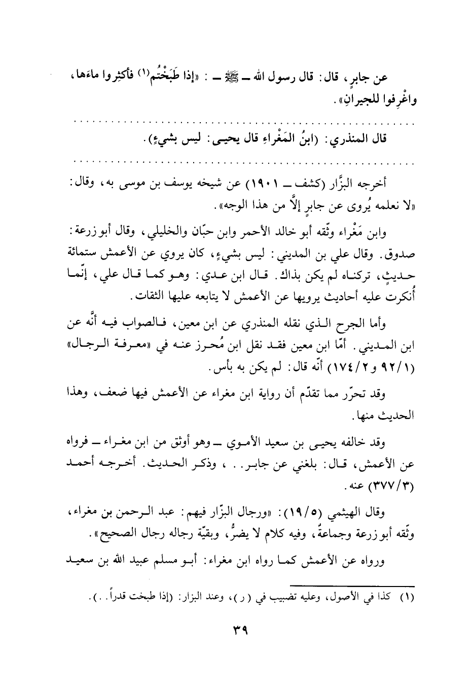 وقد تحرّر مما تقدّم أن رواية ابن مغراء عن الأعمش فيها ضعف، وهذا الحديث منها.