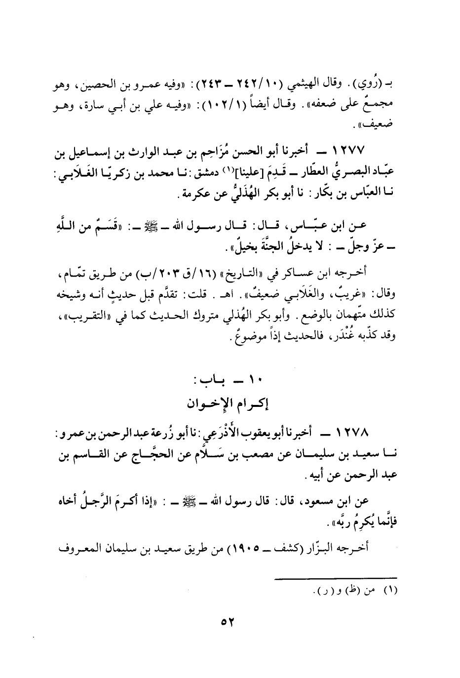 1278 - أخبرنا أبو يعقوب الأَذْرَعِي: نا أبو زُرعة عبد الرحمن بن عمرو: نا سعيد بن سليمان عن مصعب بن سَلَّام عن الحجّاج عن القاسم بن عبد الرحمن عن أبيه.